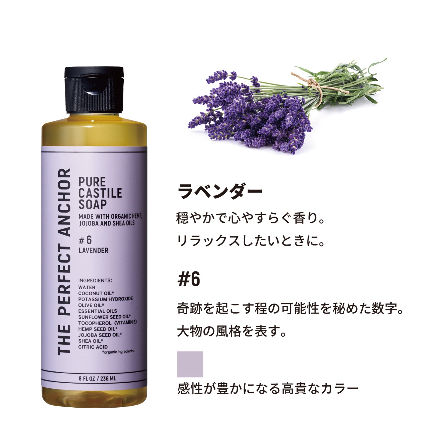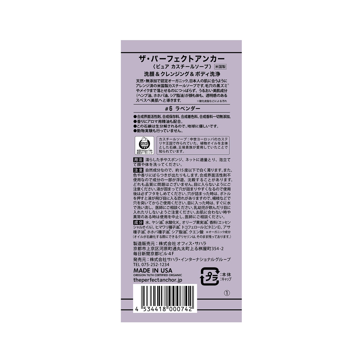 100%天然・無添加で認定オーガニック。日本人の肌に合うようにアレンジ済の、米国製カスチールソープです。
