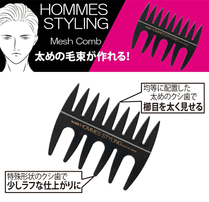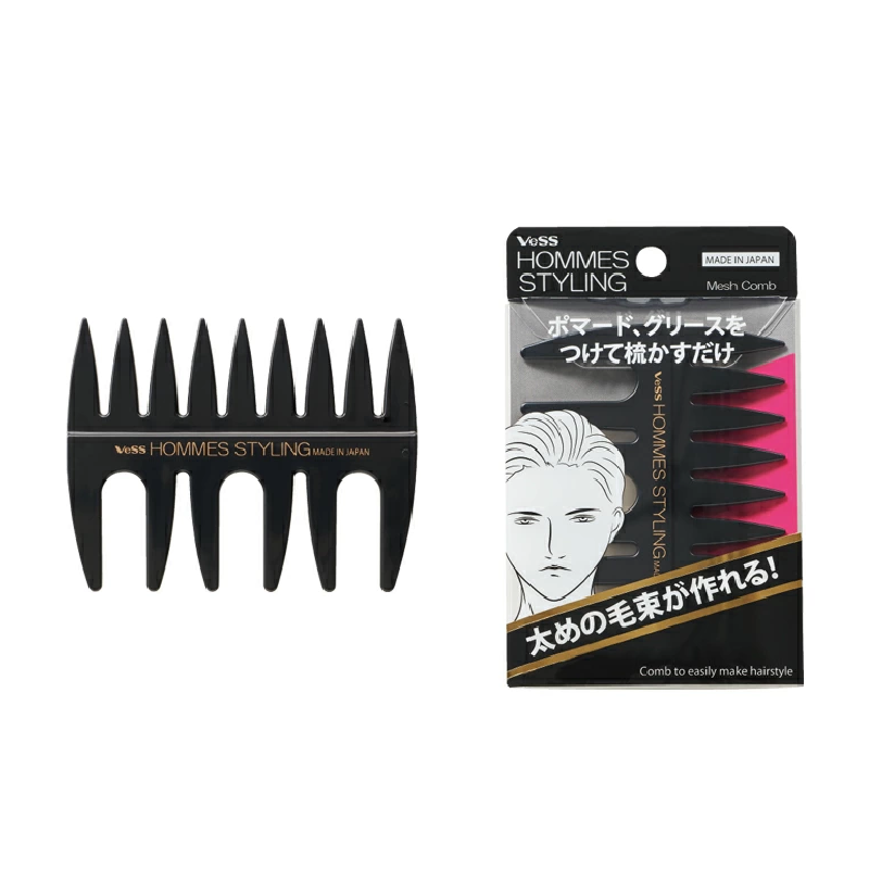 均等に配置したクシ歯は、髪にポマードやグリースをつけて梳かすだけで太めのクシ目が作れるヘアスタイルができます。