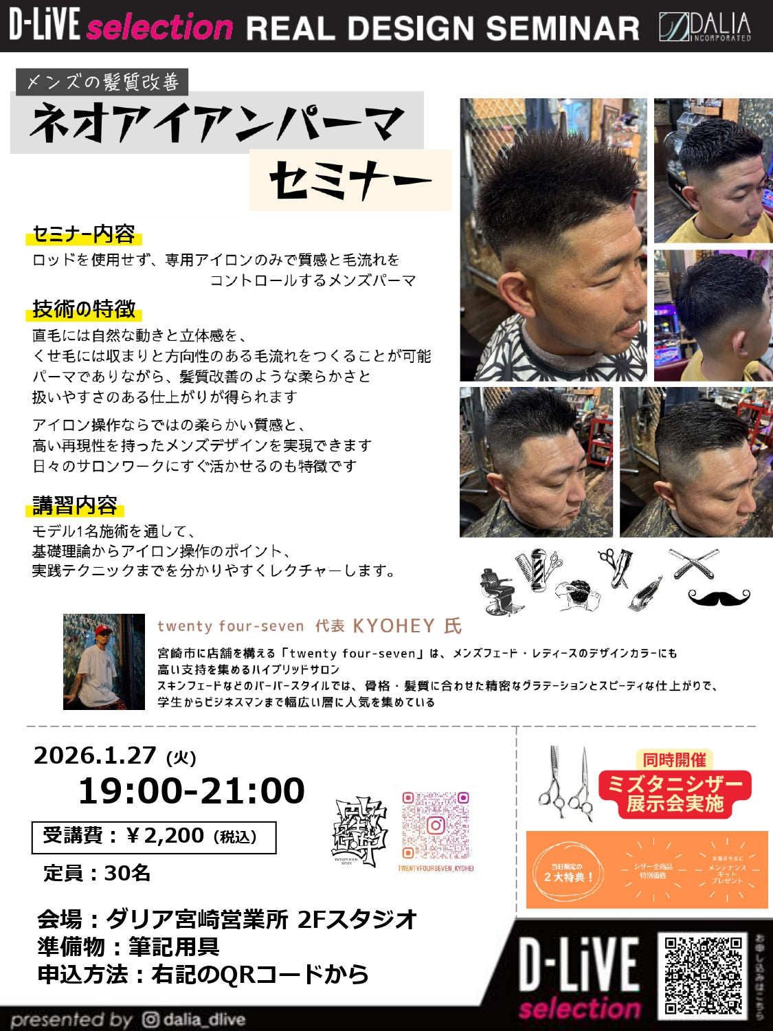 アイロン操作ならではの柔らかい質感と、高い再現性を持ったメンズデザインを実現できます。日々のサロンワークにすぐ活かせるのも特徴です。