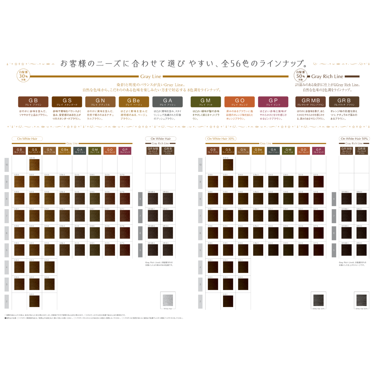 ヘアカラーの本質であるクオリティーを追求し、みんなの欲しいを叶えます。染まり、色持ちがよく、ツヤのある手触りの良い仕上がりや、香りまでも。様々なオーダーに、ハイクオリティーな仕上がりでサポートします。・白髪をしっかりカバーした染め上がりと、色持ちの良さを叶えます。・光潤感とうるおい感があり、ツヤのある髪色に仕上げます。・うるおい感を高め、なめらかな指通りで、柔らかな手触りに仕上げます。・さりげなく、優しい香りを叶えます。