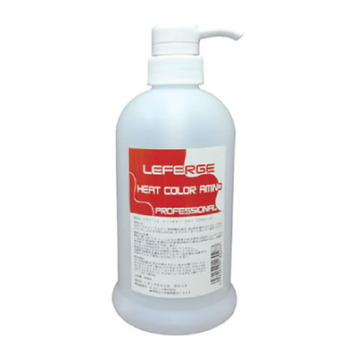 カラー剤のひんやりを解決!カラー剤が34度に温まります。使用量は1剤2剤総量の10%(総量100gの場合はヒートカラーアミノを10gミックス)。調合後、わずか1分でカラー剤が34度に温まり、塗布時のひんやり感を緩和します。発色の邪魔をせず、髪に優しいケラチン、コラーゲン、アミノ酸配合。