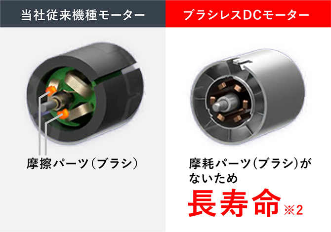 摩耗するブラシパーツが無いため、長寿命※2を実現しました。