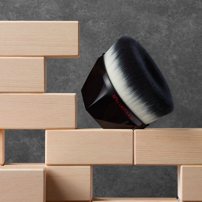 やさしい肌当たりで、摩擦も少ない花びらのような形のファンデーションブラシ