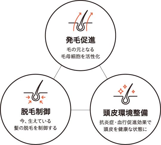 薄毛解消には、この3つのアプローチを”同時”にすることが大切です。