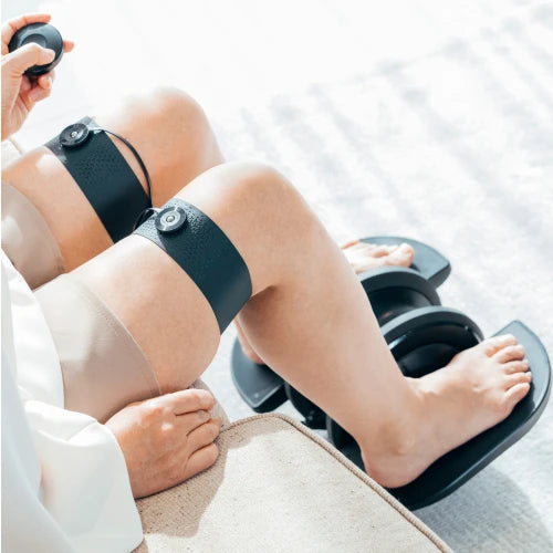 足の動きを認識し、最適なEMS(電気)刺激を送る、ハイブリッドトレーニングを自宅で簡単に。EMSフットローラー。