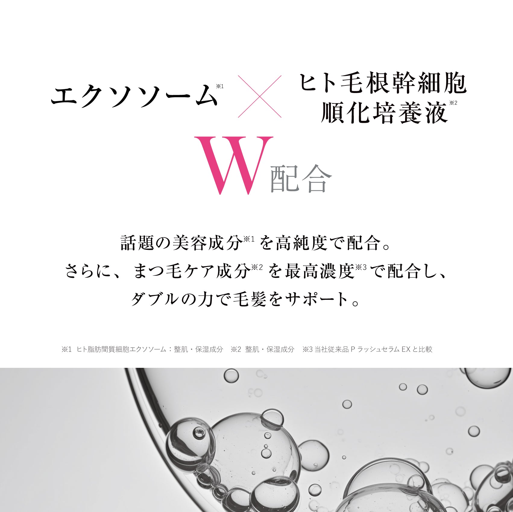 *1ヒト脂肪間質細胞エクソソーム:整肌・保湿成分、*2ヒト毛根幹細胞順化培養液:整肌・保湿成分、*3メーカー従来品比
