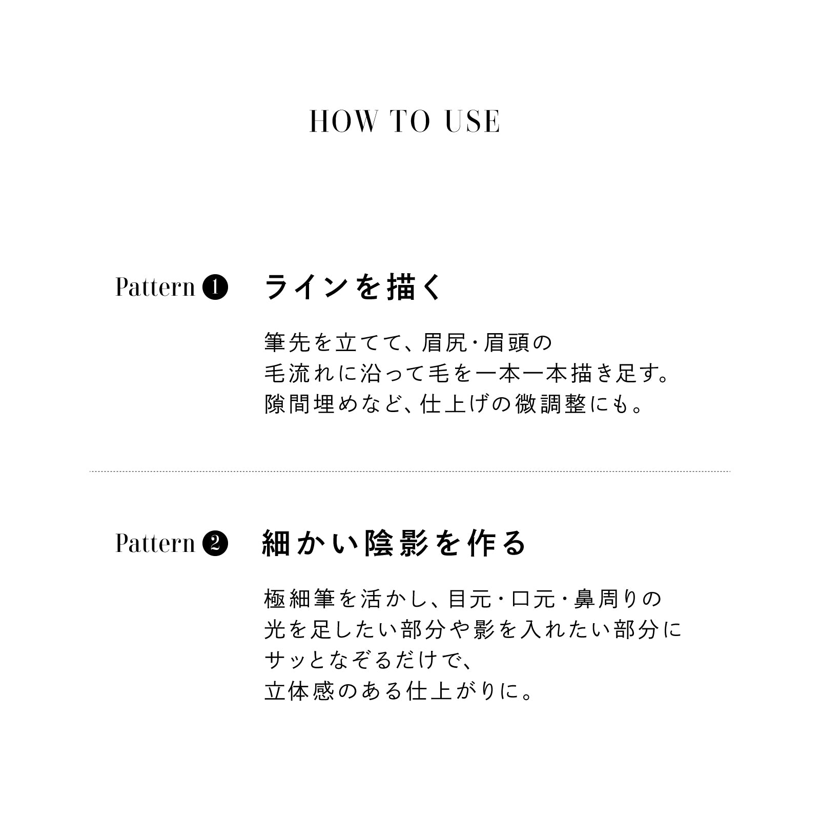 アイブロウを中心に、細部まで自在に描ける計算された毛質と筆先。眉毛一本一本を繊細かつ自然に仕上げる、「プロ仕様の精密ブラシ」です。