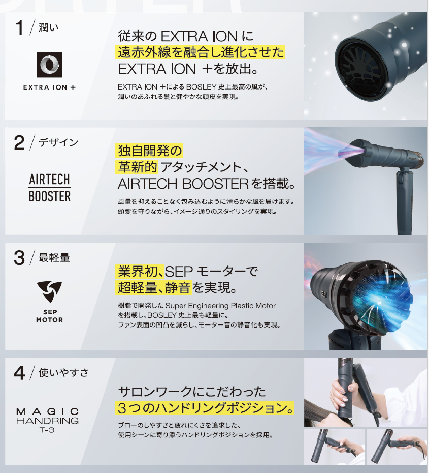 【究極のサロンワークを追求した、BOSLEY史上最高性能のプロ仕様ドライヤー】