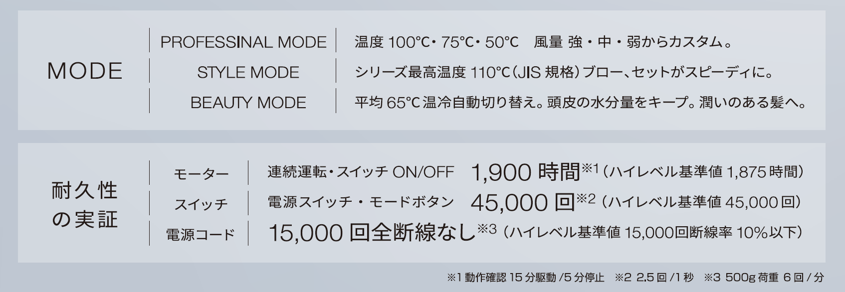 MODE ▶ シリーズ最高温度110℃(JIS規格)ブロー、セットがスピーディーに。