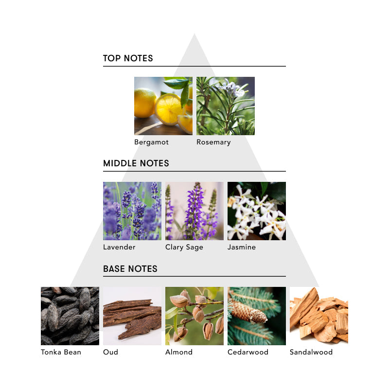 甘く深いトンカビーンと、静けさを湛えたラベンダーが主役のハーバルグルマンウッディ調の香り。ベルガモットとローズマリーが爽やかなはじまりを告げ、クラリセージとジャスミンがやさしく寄り添う。この香りに包まれた瞬間、心の奥に眠っていた“もう一人の自分” が、そっと目を覚ます。誰にも言えなかった想い、置き去りにした記憶。そのひとつひとつが香りとともにゆっくり浮かび上がり、長いあいだ胸にしまっていた感情のほつれがほどけていくたびに、あなたの物語に光が差し込み静かに動き出す。香りが心を包み、あなたは少しだけ強く、そしてやさしくなっていく。