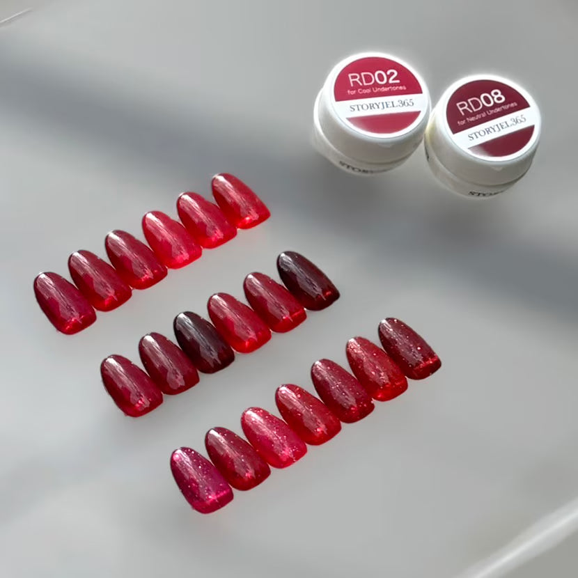 全12色はすべて赤。一見似ているようで、それぞれが異なる表情を持ち、指先の印象を大きく変えます。ワンカラーがバシッと決まり、サロンワークでの仕上がりを格上げします。