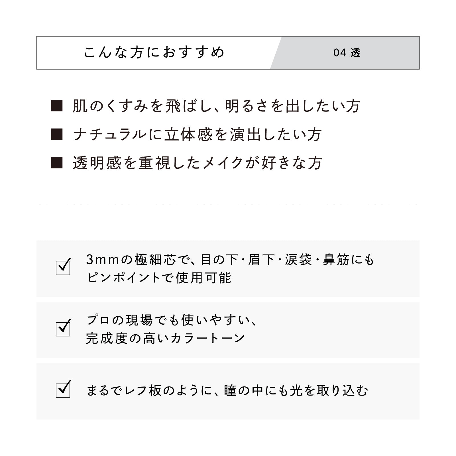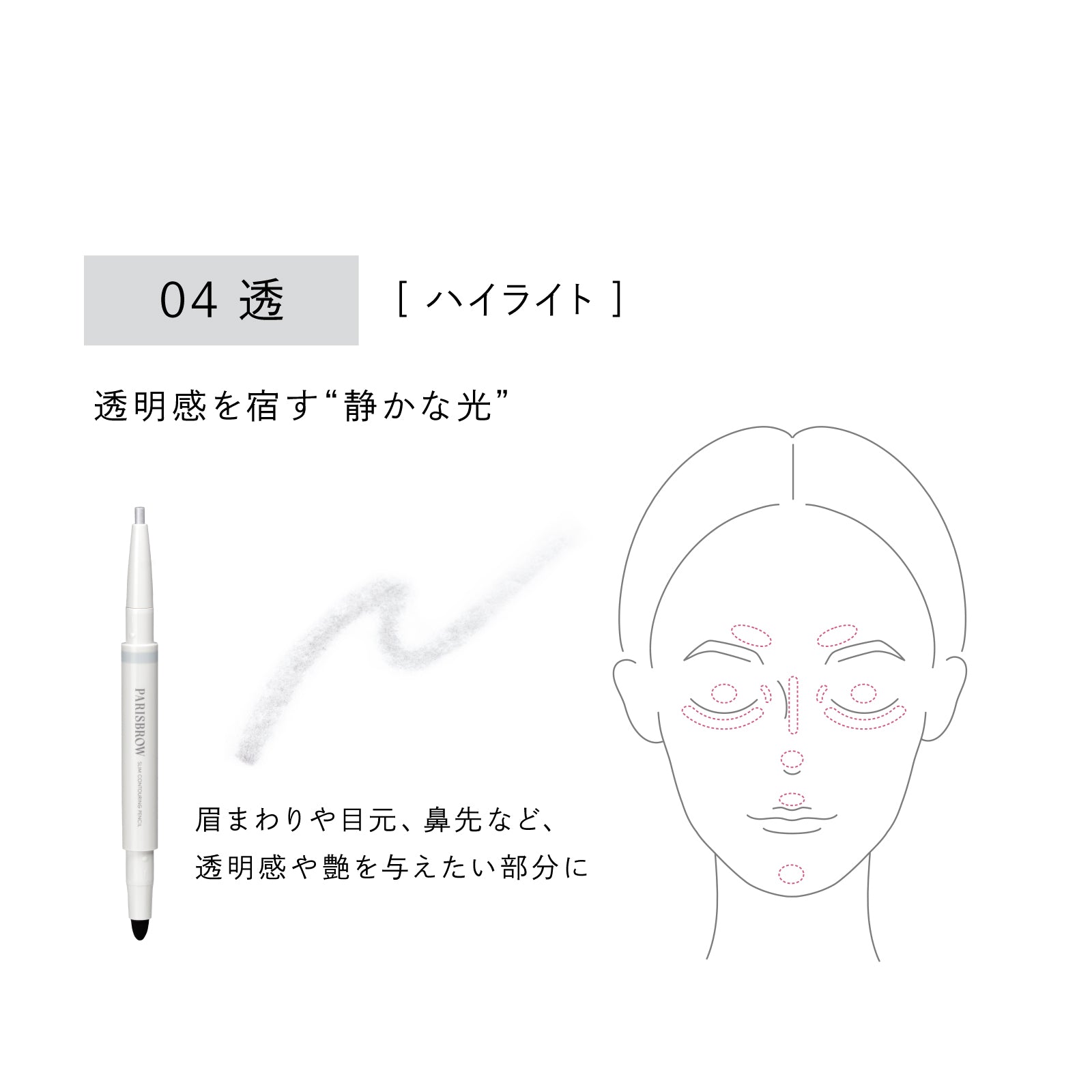 04 透:眉まわりや目元、鼻先など、透明感や艶を与えたい部分に