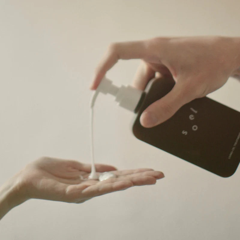 シャンプー後、髪の水気をしっかりと切ります。手のひらに適量とり、指でとかすように毛先から根本まで十分に塗布し、なじませます。