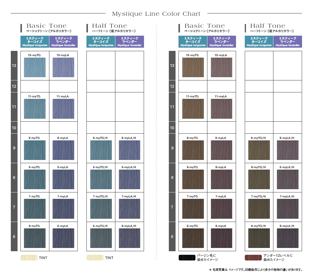 クリアな寒色と高彩度染料の組み合わせで、やわらかさと彩度感の両立に成功。セミツヤ + じんわり彩度を実現しました。また、硬さの出にくい紫褐色でバランスを整えることで、アンダーは透けにくいまま、やわらかさもアップします。