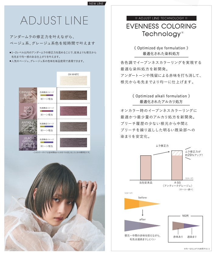 【アジャストライン】アンダームラの修正力を叶えながら、ベージュ系、グレージュ系色を短時間で叶えます。