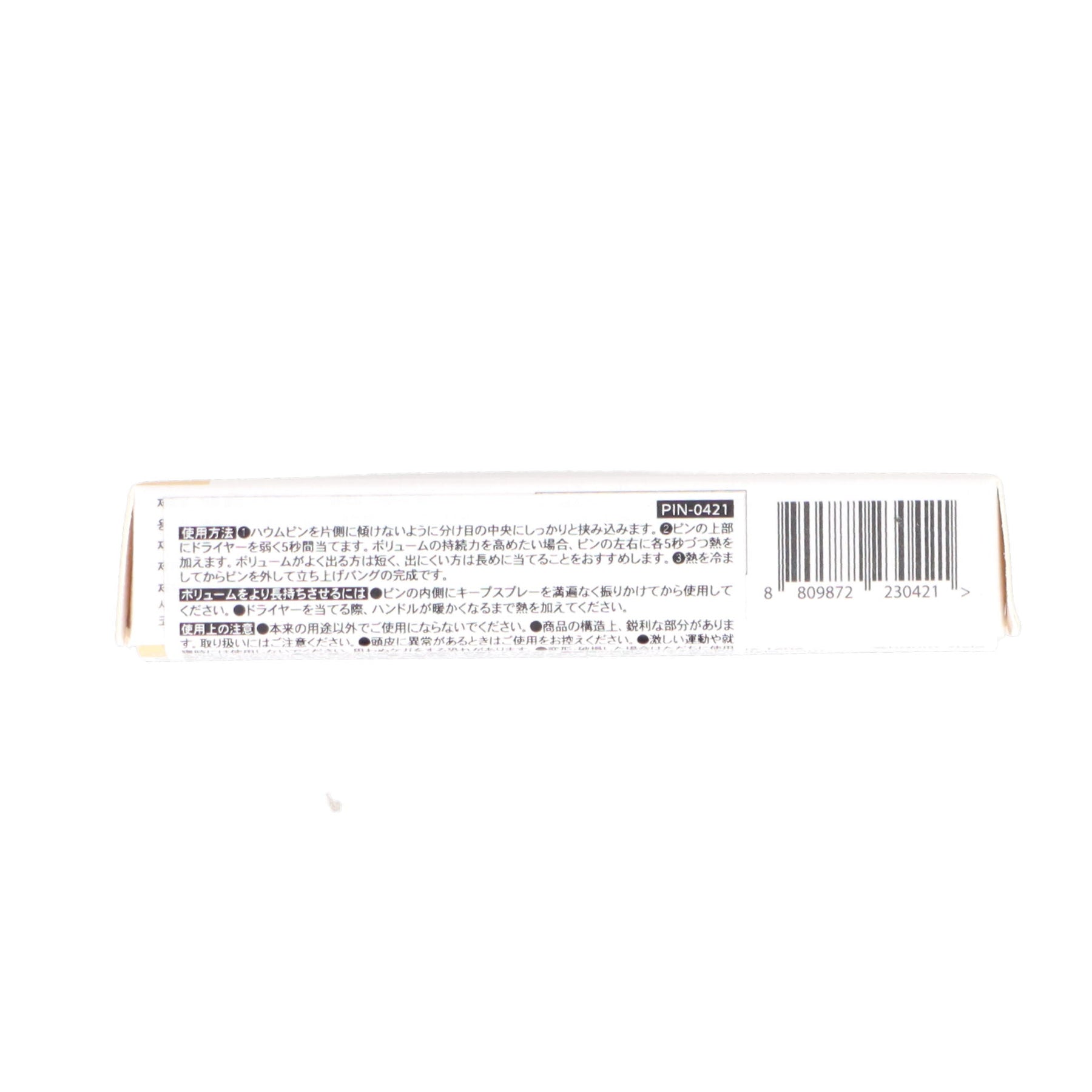 ピンを傾けないように、分け目の中央にしっかりと挟み込みます。ピンの上部、左右に満遍なくドライヤーを当て、熱を加えます。熱が冷めてからピンを外します。手ぐしで整えて立ち上げバングの完成です。