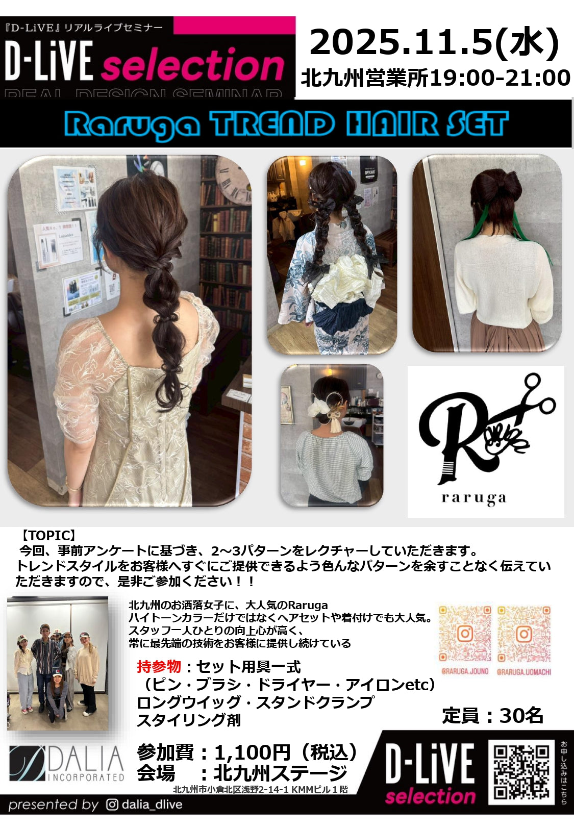 トレンドスタイルをお客様へすぐにご提供できるよう色んなパターンを余すことなく伝えていただきますので、是非ご参加ください!!